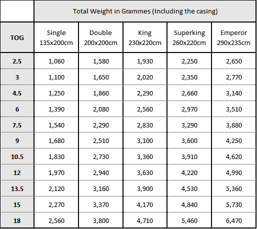 We also supply bespoke tog options, so you can have exactly the tog rating you want.